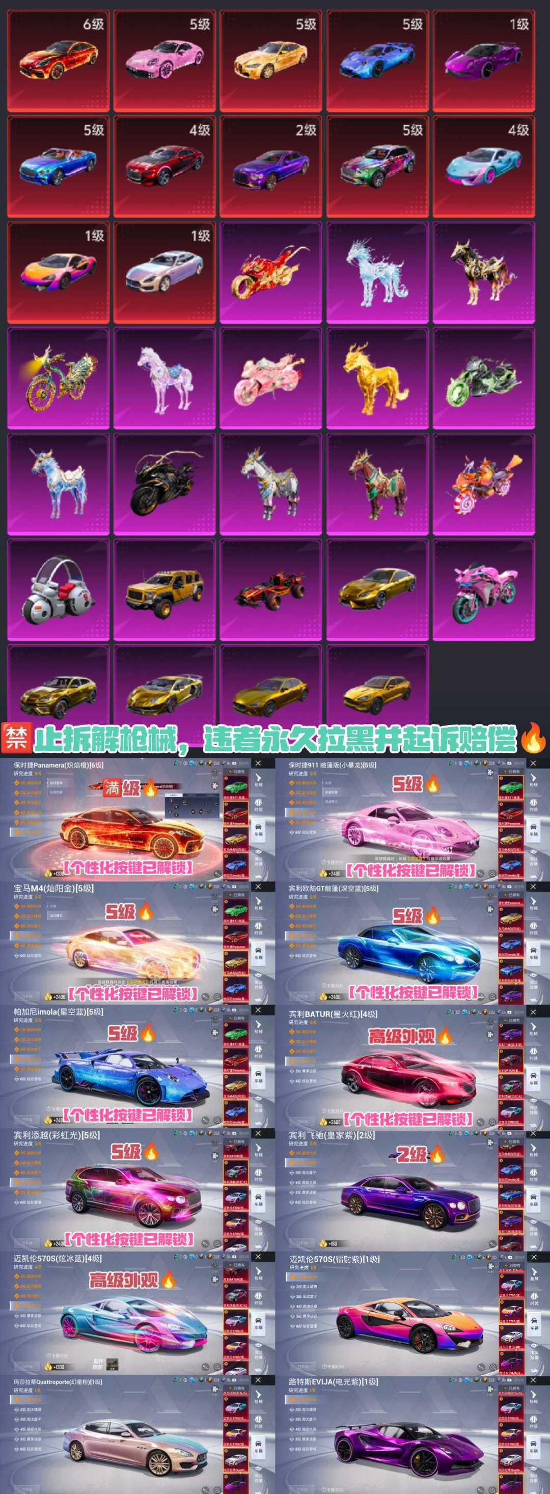 限制: 租号15次及以上 | 撤单率<30%才可租用此帐号装备描述:①拆解枪械载具永久拉黑!!!如果装备与图片描述不符请撤单,不要去拆解,文明游戏。 ②温馨提示【不跳转登录游戏】:划走和平精英和 租号app后台,重新协助登录。 ③如果大厅提示账号保护无法开始游戏,无需投诉订单,划走和平精英后台,重新打开和平精英自动登录后即可解决。