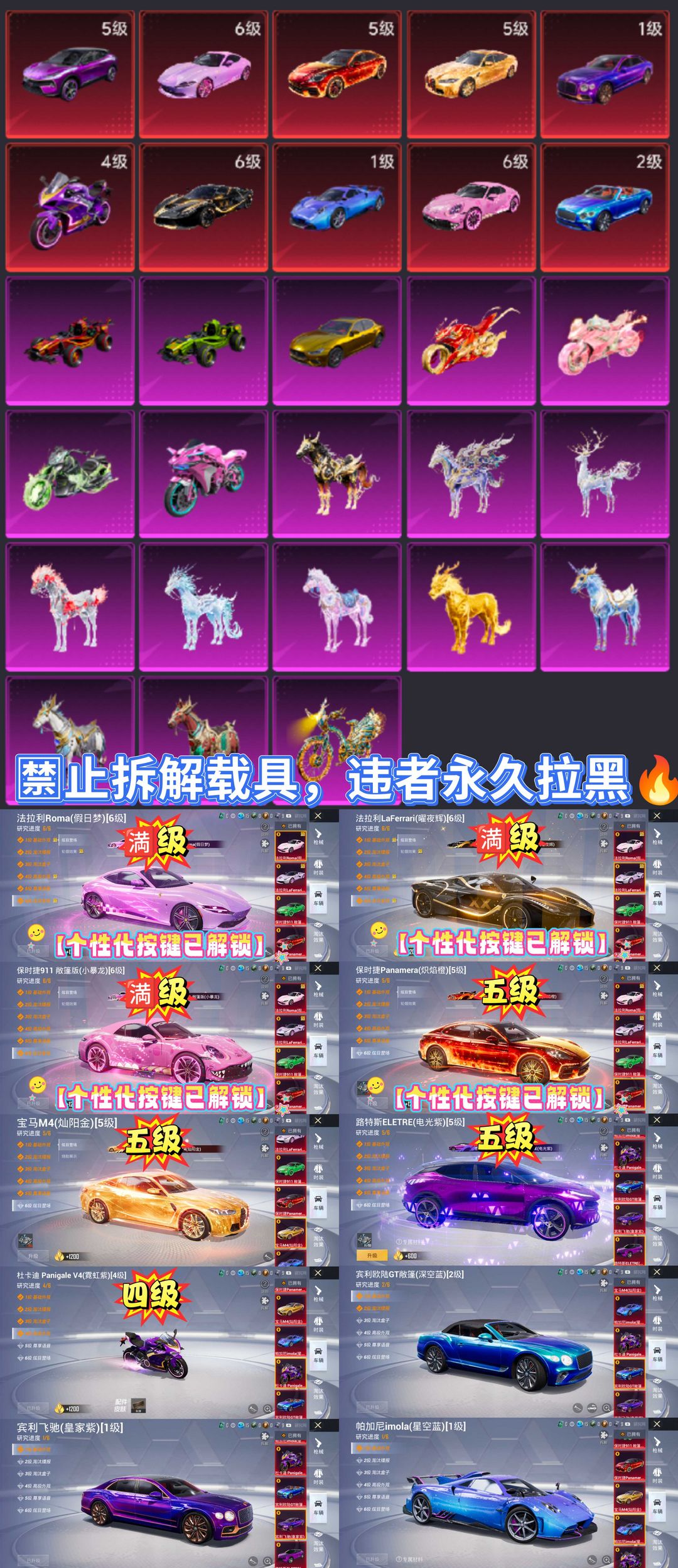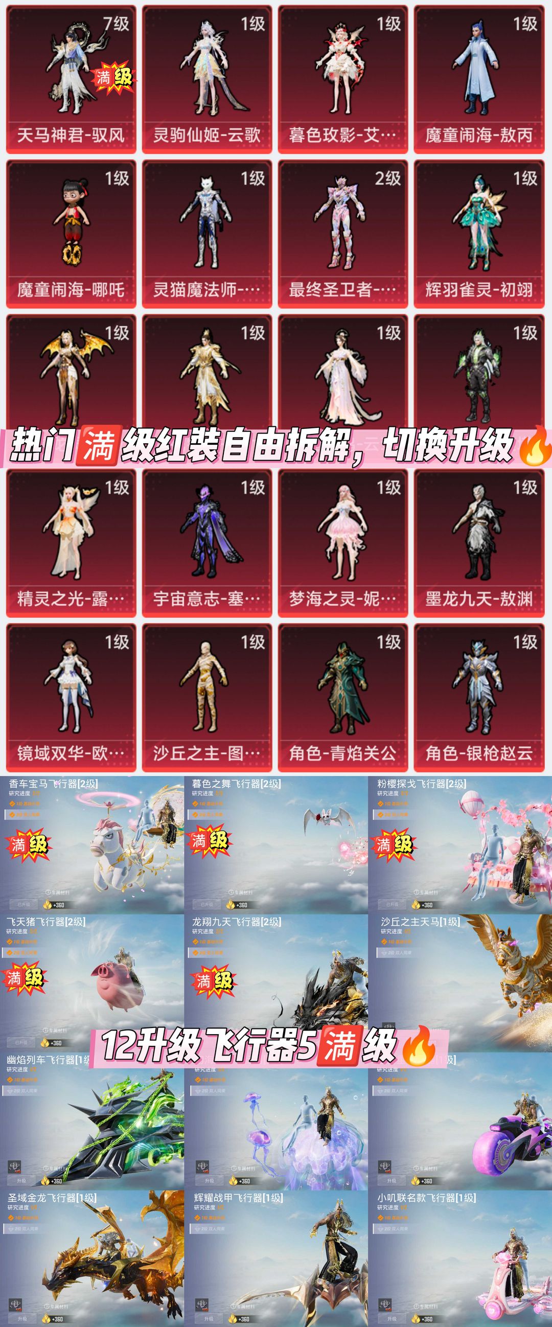 天马神君灵驹仙姬全系 双满级法拉利 满级20套全红装 老101巡查衣 48万热200粉28车⑩升级车