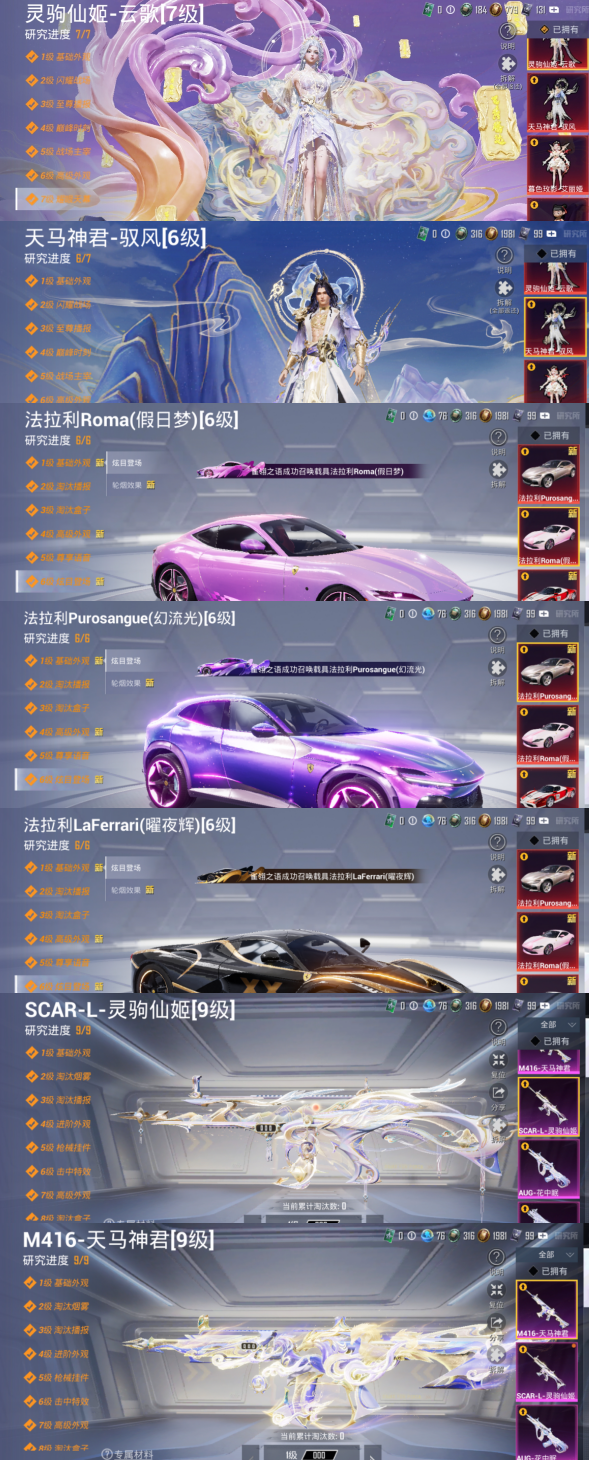 ⑥满级灵驹仙姬全套+6级天马神君全套+3辆满级法拉利~排面拉满⚡红装全有⚡老101⚡6把9级枪