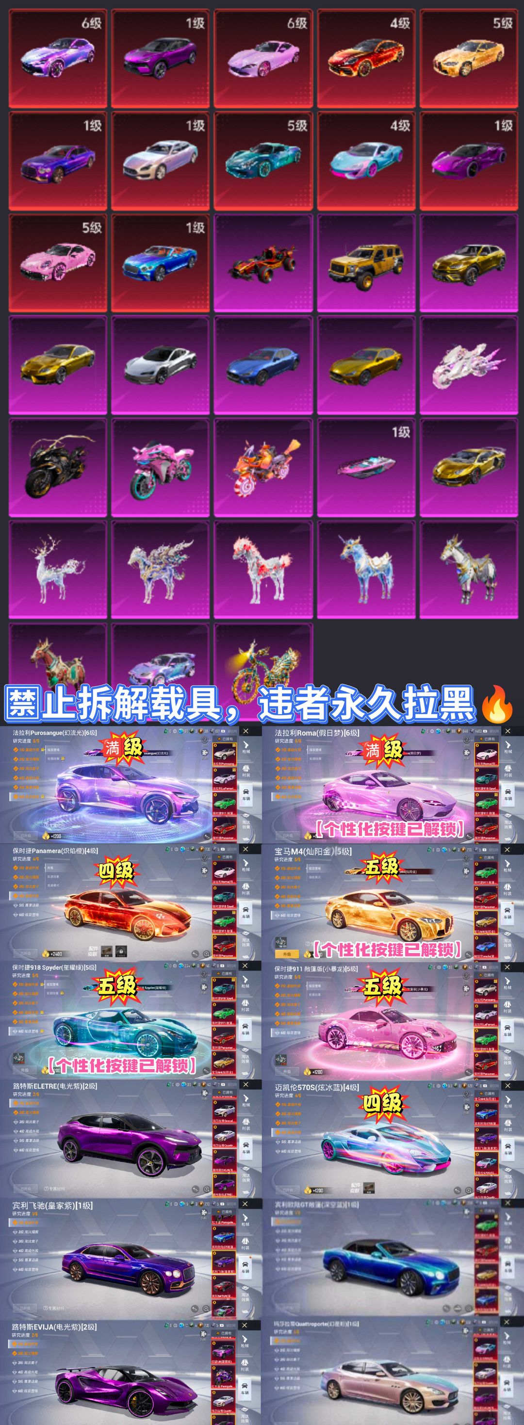 天马神君灵驹仙姬全系 双满级法拉利 满绝世满级⑮套红 老101龙师傅 61万热240粉33车⑫升级车