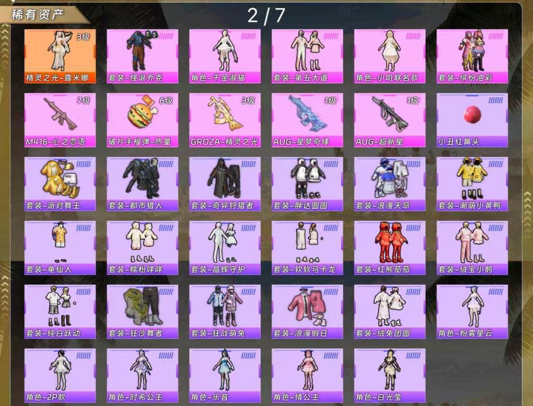 包天便宜 男神3件套+小丑+9级星梦奇缘 地铁2钻苏尔南 42套粉装 20把升级枪