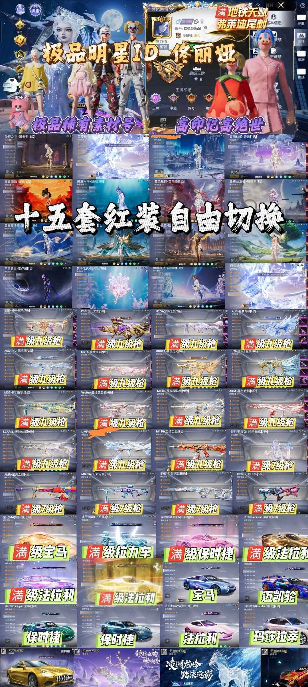 明星ID 佟丽娅/弗莱迪尾刺/老1/星星裤/龙师傅/满级红装/百变/破晓/星梦/狗砸/法拉利/宝马