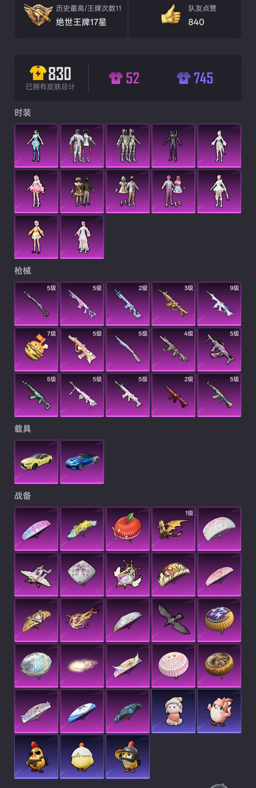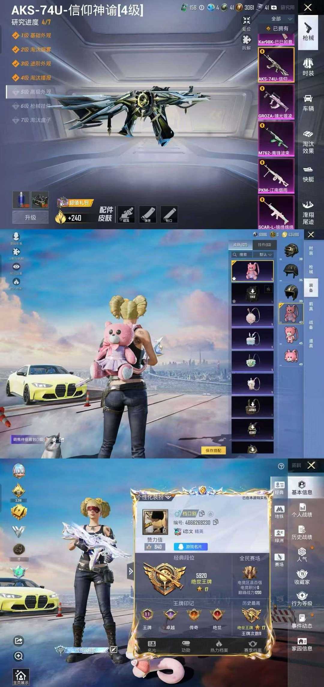 限制: 租号20次及以上 | 撤单率<49%才可租用此帐号装备描述:该号套装149个,粉色12个 枪皮210个,特效枪15个 装备298个,三级头37个,三级包43个 载具皮肤2个 降落伞78个,滑翔尾迹9个,动作77个 祝您游戏愉快~请勿开挂坐挂车~请勿乱撤单喔~谢谢宝宝们~