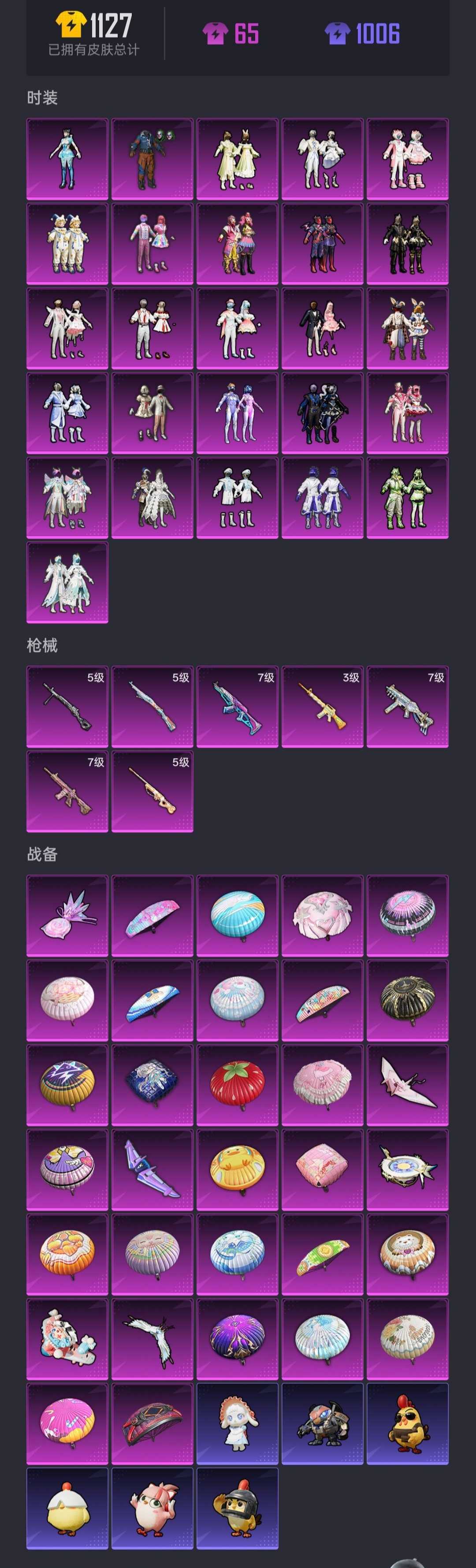 限制: 租号10次及以上 | 撤单率<49%才可租用此帐号装备描述:禁止开挂,禁止坐挂车,禁止骂人,禁止分解枪械等~谢谢宝宝们~ 套装232个,粉套26个, 枪皮274个,特效枪7个 装备405个,三级头49个,三级包57个 滑翔尾迹10个,伙伴6个,动作97个 祝您游戏愉快~