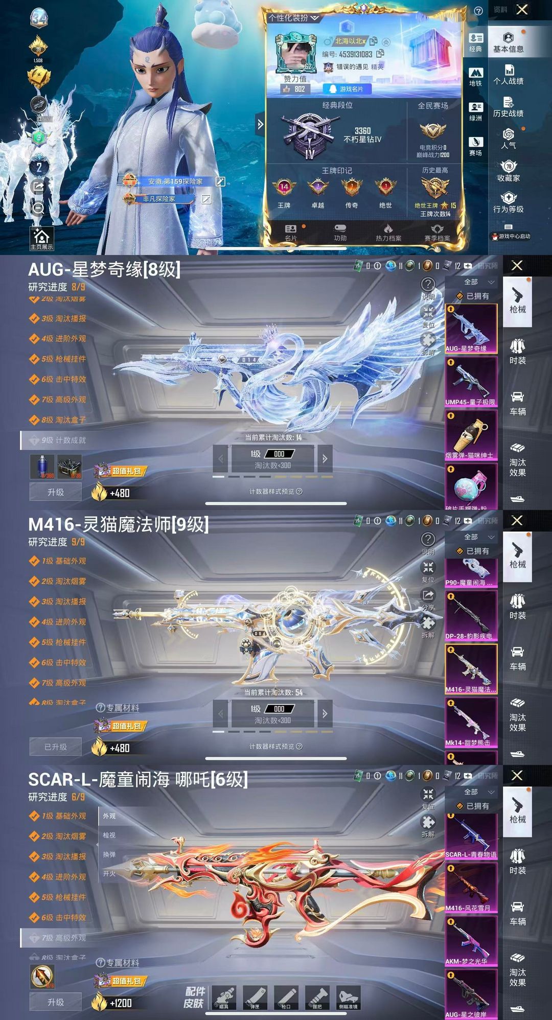 限制: 租号8次及以上 |装备描述:极品素材非凡探险家✨8级星梦奇缘✨满级灵猫魔法✨6级魔童闹海✨2级敖丙小丑赤蝎都市极限水晶马冰绡玉鳞黑曜马✨2红10粉17特效枪5载具