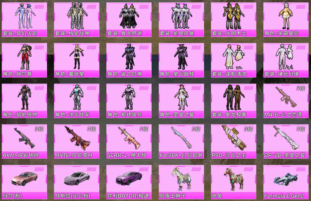 【红装:2 粉装:17 粉枪:7 载具:8】非速玩红木乃伊图卡盟❤红银枪赵云❤梦幻火箭❤圣堂之誓❤