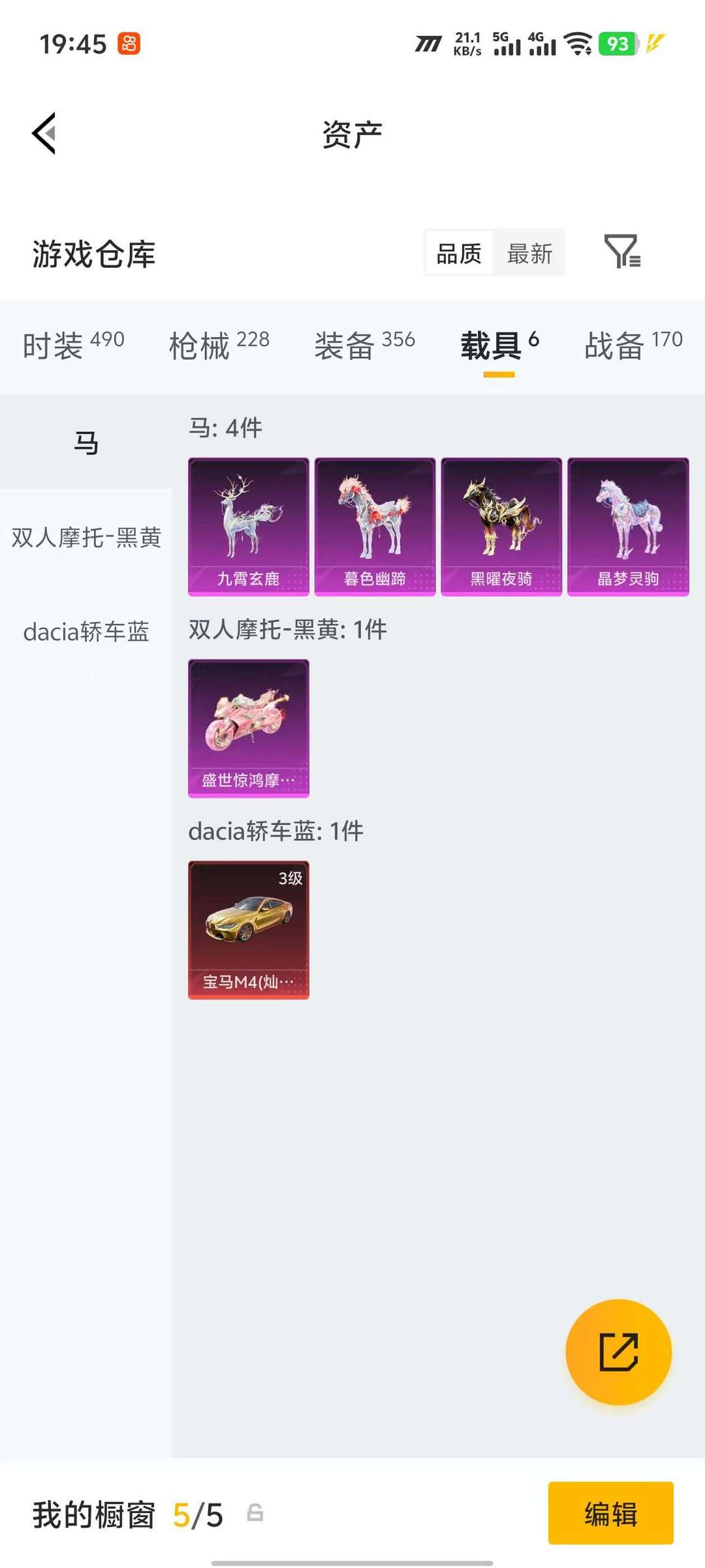 3红装,盛世惊鸿云鸾6级高级外观,新红装暮色玫影1级,欧若拉3级,17粉装,6载具,宝马灿阳金3级。