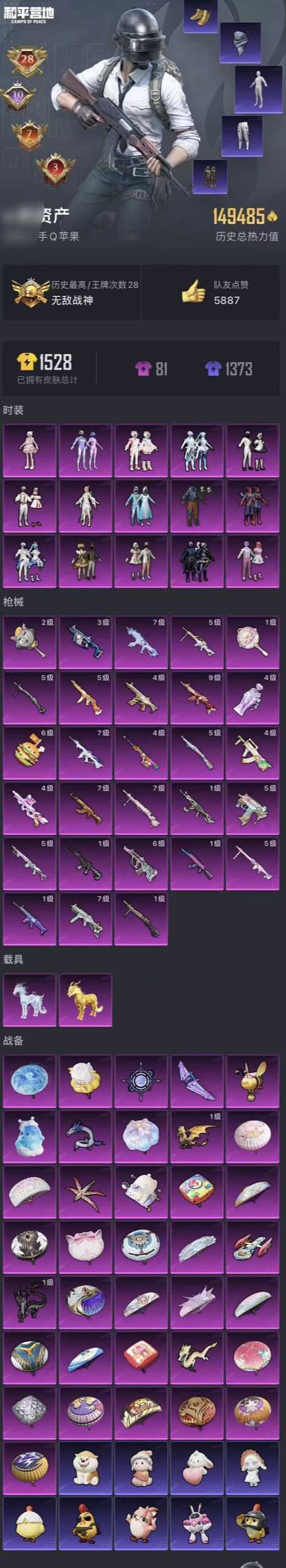 限制: 租号5次及以上 |装备描述:老板必看【如修改ID或者重置二级我会全网拉黑严重的起诉赔偿!你要知道你的机会只有一次考虑清楚再做有时候号会被禁言介意勿拍随意撤单永久拉黑!】 有时候上一位老板顶号重新上即可不是号主故意登入勿退单 苹果Q 有时候会碰到素质差的拆枪不得以枪等级问题撤单否则永久全平台拉黑!禁止分解升级车和特效枪 开挂,修改画质,改超广角等导致封号需按充值金额赔偿ld账号禁止改名,如修改id,赔偿账号所有充值金额 1:租赁即形成租赁合同关系,租方在租赁期间应当妥善保管游戏账号,禁止分解游戏内道具、禁止传播违规信息、禁止使用外挂等作弊手段 2:如因租方违反游戏规则导致账号被封禁或限制登录,租方赔偿账号充值的所有金额 3:本账号仅租方享有使用权,在租赁期间由租方独立且排他使用,租方不得将账号进行转租,转借,如租方将账号进行转租、转借,被转租、转借的人把账号拿去使用外挂或其他作弊手段导致账号被封禁或限制登录,租方需赔偿账号充值的所有金额