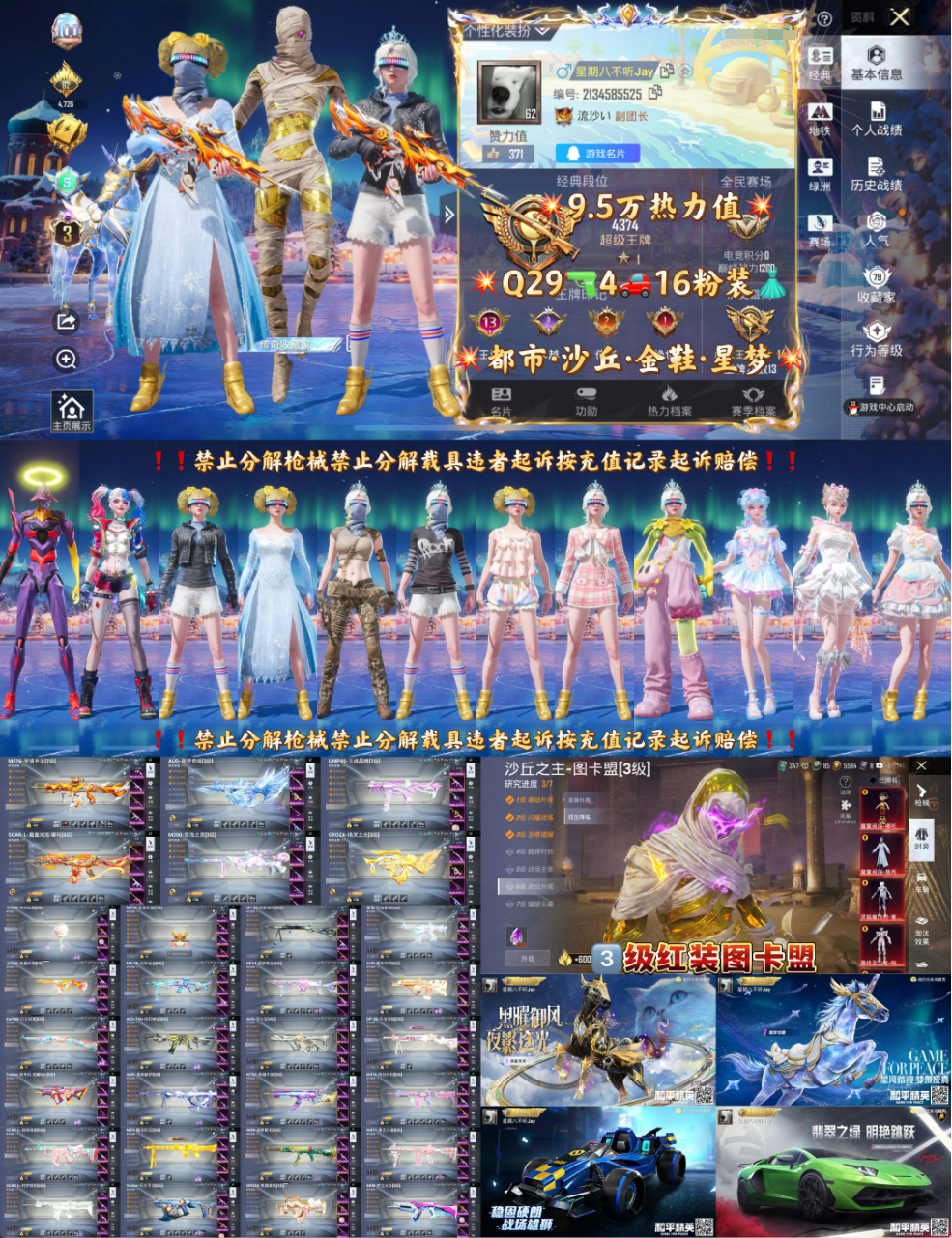 限制: 租号7次及以上 | 撤单率<35%才可租用此帐号装备描述:本店致力于低价高质量账号,做到让每位玩家都能租得起号,租得到号,让每位老板都能玩得开心、玩得放心; Ⅱ本账号已经网络虚拟财产备案,对外挂零容忍,若租客在租号期间开挂导致账号被封禁,统一交由平台提取个人信息上报至公安局,按照账号价值原价赔偿; Ⅲ挂机、账号排位KD(kd>1.8)过高等会导致账号禁排,望各位大神手下留情⚠ Ⅳ各位老板在租号最后请不要开游戏秒退,以免影响下一位用户的体验,在您下单后会送您额外的十分钟; Ⅴ祝愿每位老板都能玩得开心、玩得尽兴,感谢各位老板光临小店❀
