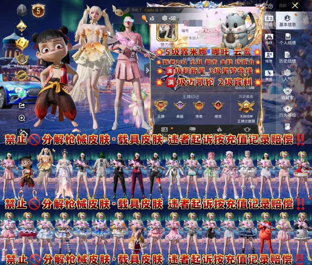 地铁满天赋金标老101全素材✨5级哪吒露米娜✨5把9级枪满级超新星星梦奇缘✨满级迈凯伦宾利超大衣柜
