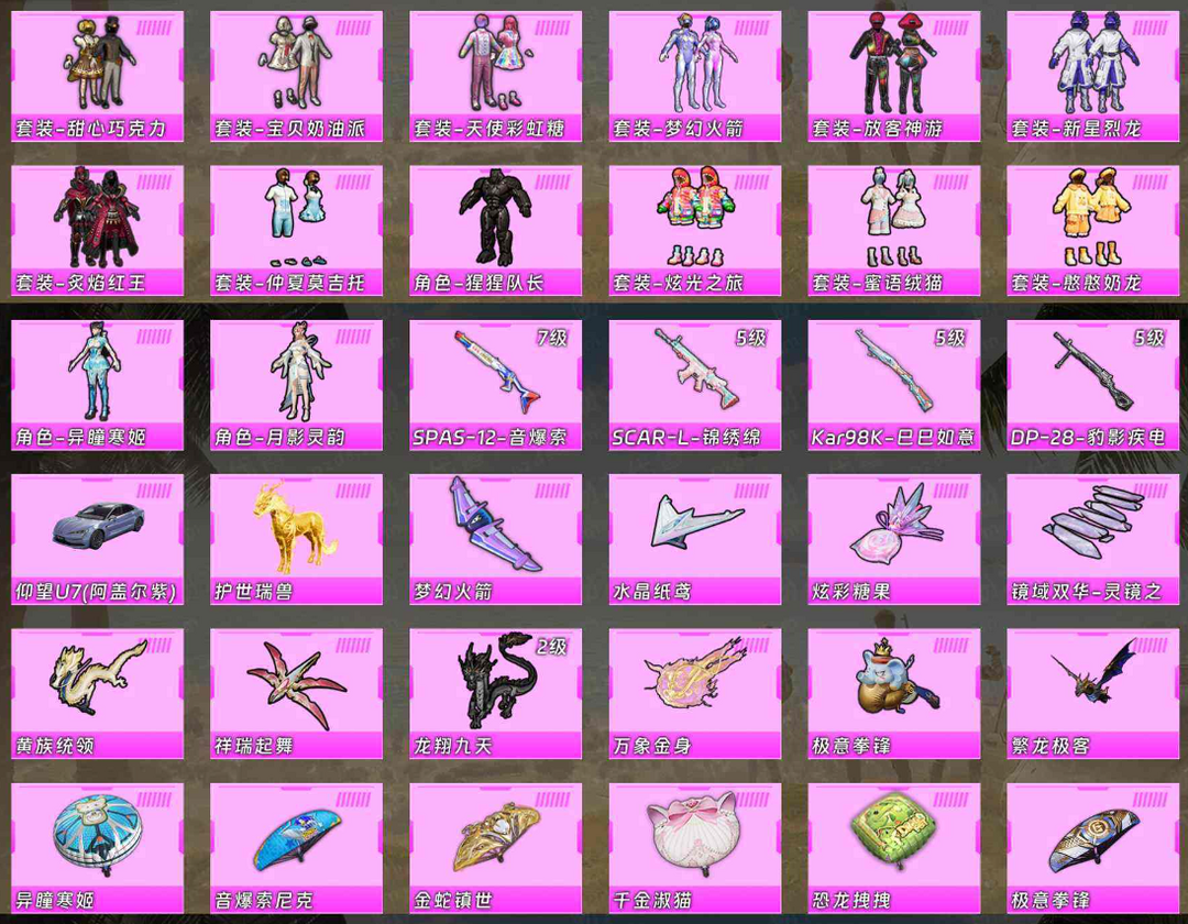 【红装:1 粉装:14 粉枪:6 载具:2】红敖渊♥梦幻火箭♥粉螳螂♥蓝螳螂♥赤蝎♥都市♥派对♥哥特
