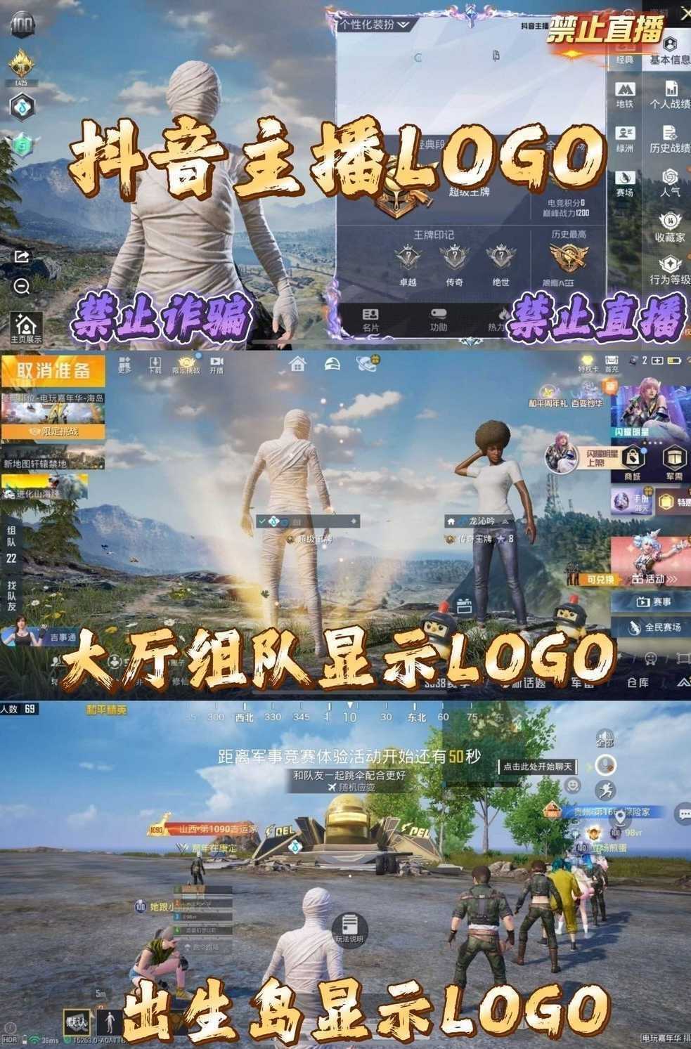 抖音主播LOGO/自带抖音LOGO击杀特效/进局即显主播身份/木乃伊/不能直播
