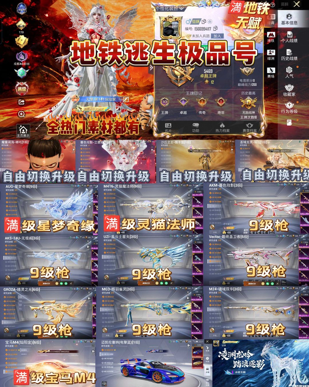 满天赋地铁/满级满级暮色玫影/星梦奇缘/无限阁灵猫法师/男神套/宝马M4满级