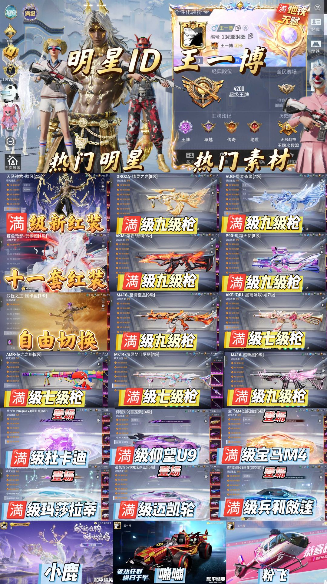 一线明星ID 王一博 老101/满天马神君/驭风[/鬼面斩/宝马M4/星梦奇缘/万古/精灵/兵利