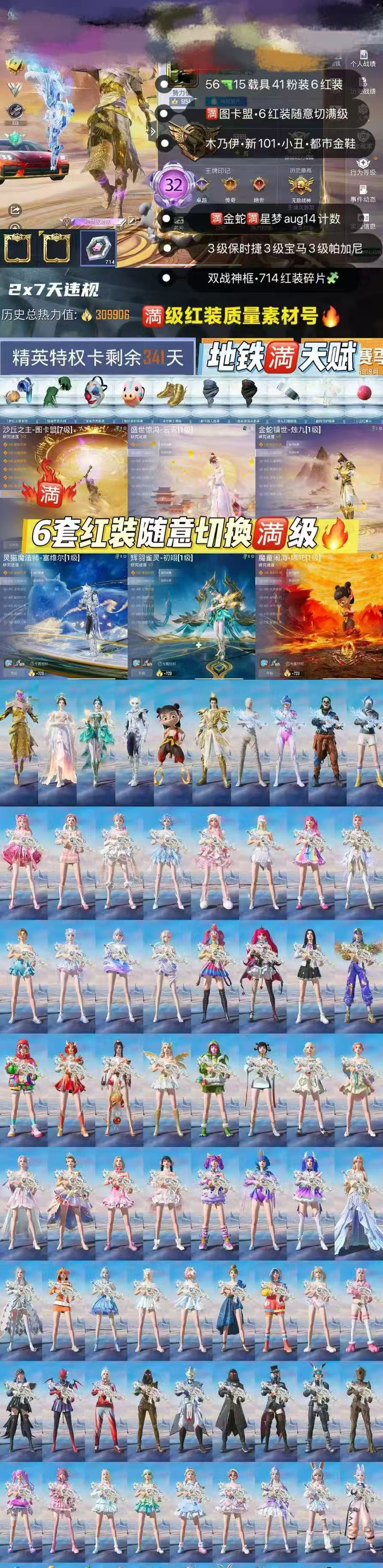 限制: 租号4次及以上 |装备描述:满级图卡盟❤7红装随意切换❤满级星梦奇缘❤满级金蛇❤龙师傅星星裤❤32紫色印记❤地铁满天赋小丑都市赤
