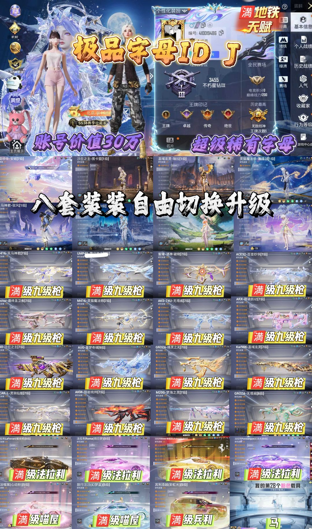 字母ID J 满级红装/天马/无垠阁/诸神/百变/狗砸/法拉利/魔法喵窝/旅行汪汪/龙师傅/小舞