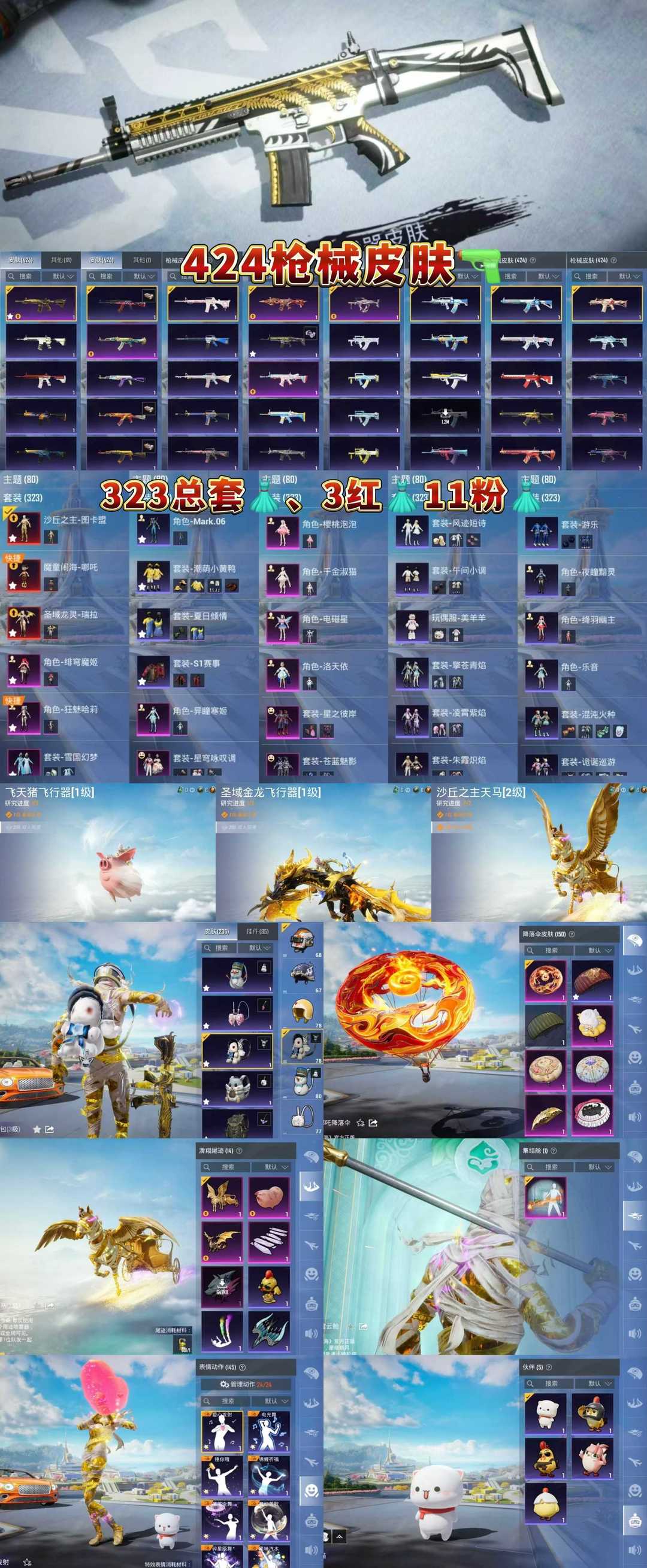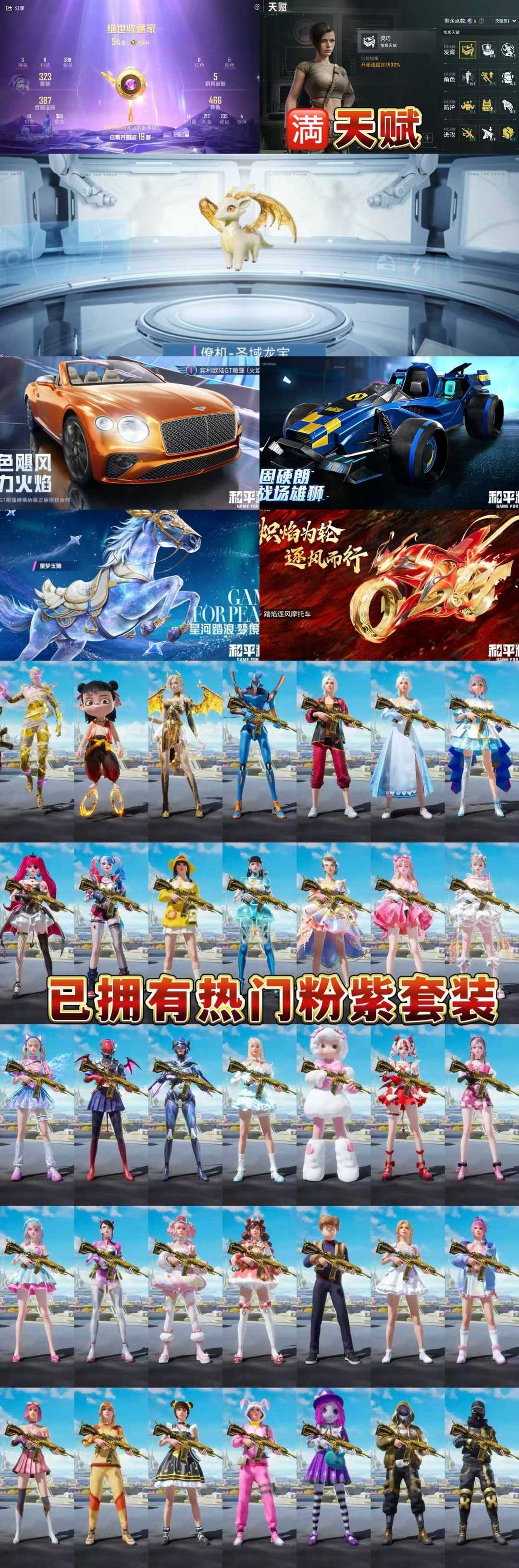 装备描述:14粉,4载具,323套装,满级木乃伊,40王牌印记,无敌战神历史最高段, 平底锅-林间仙鹿/Vector-绯穹魔姬/AKM-绿萝繁花/M762-激战未来/M416-五爪金龙/AUG-暖羊咩咩/SCAR-L-锦绣绵绵/GROZA-镜光银凌/SCAR-L-魔童闹海 哪吒/Mk14-樱桃泡泡/MG-36-沧焰双生/DP-28-豹影疾电/UMP45-量子极限/P90-沙丘之主/破片手榴弹-瓶中星球/烟雾弹-甜梦果泡/Kar98K-圣域龙灵/Kar98K-巳巳如意/宾利欧陆GT敞篷(火焰橘)/合金龙骨(蓝)/星梦玉骢/踏焰逐风摩托车/