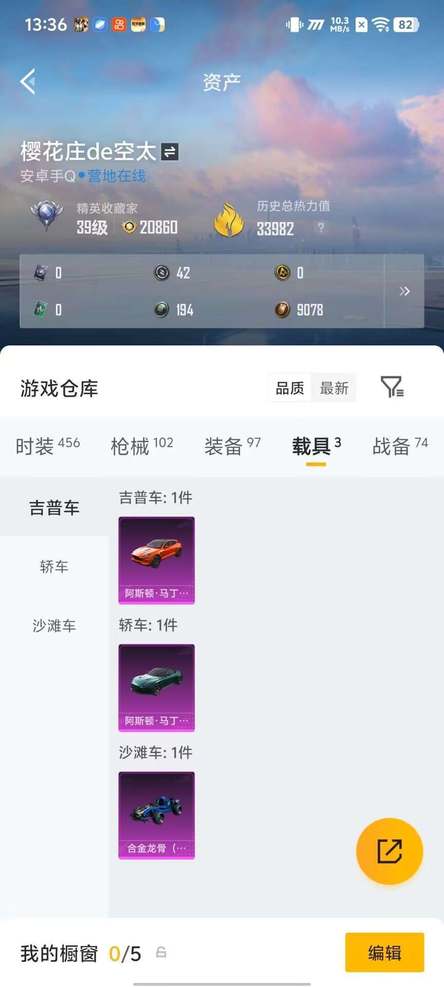 两套粉装,三台车,非常多的实用枪械,飞行器也有