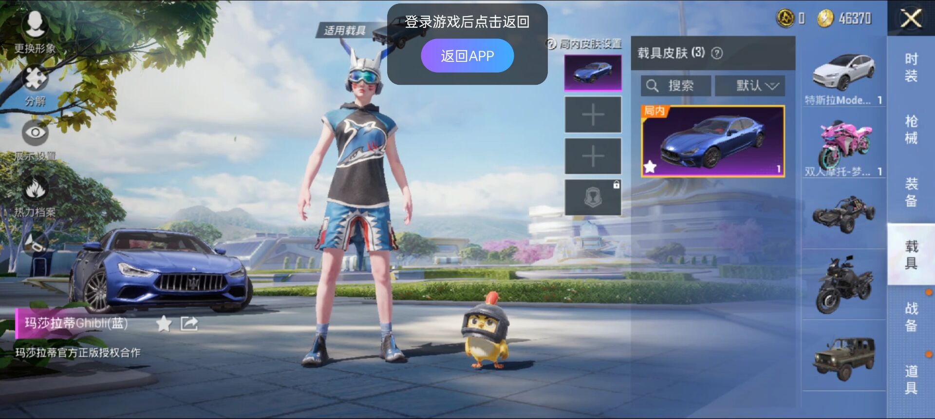装备描述:3车2特效枪玛莎101摩托吉普特斯拉5级五爪炫紫AK93枪衣