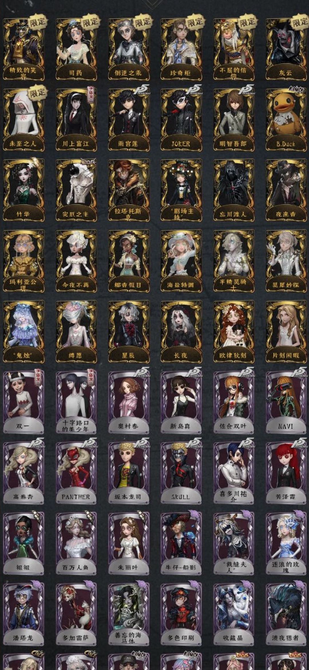 装备描述:金【三丽鸥满配】【伊藤润二满配】倒逆之汞奇珍柜灰云Joker川上富江厄运之主Skull明智吾郎精致的笑容 倒逆之汞 珍奇柜 不屈的信仰 灰云 未至之人 川上富江 雨宫莲 JOKER 明智吾郎 B.Duck竹华 灾厄之主 剧场主持 忘川渡人 夜来香 玛利亚公理 椰香假日 海盐特调 半精灵骑士 灵犀妙探 星辰 长夜 欧律狄刻 片刻闲暇 双一 十字路口的美少年 奥村春 新岛真 佐仓双叶 NAVI 高卷杏 PANTHER 坂本龙司 SKULL 喜多川祐介 祖祖 百万人鱼 朱丽叶 牛仔-船影 逐浪的玫瑰 多加雷萨 收藏品 宿醉 应许之日 B.Duck潮 Buffu 正位审判 锦中鳞 蜀中客 古董商-填海平 竹荫守护者 家园设计师 异想Hello Kitty 梦境大耳狗 悦乐酷洛米 奇趣美乐蒂 稀缺病案 先驱探索 九月 摩诺 小六 蛋小黄的好朋友 弦音畸变 OPH.NAIR 捣蛋裘克 永生花 白兔先生 动力芯 苏珊娜 万能钥匙 水球救生 墨卡托投影 紫孔雀 彼岸 硫火 阴阳司公 桃面书生 冰中蝶 琥珀” 纯白之盐 入验师-记忆之骑 鼹鼠先生 ACE 秋日随想 动植物学教授 温暖的平安夜 飞行家-异相睡眠 莱拉 墨韵 BISHOP-f1 “有机磷”
