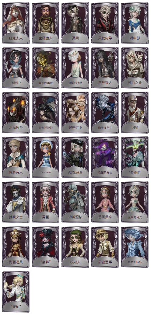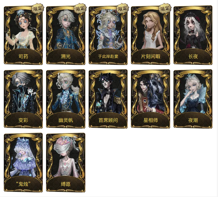 装备描述:金皮:于此岸赴宴、司药、溯光、长夜、变彩、幽灵帆、首席顾问、星相师、夜潮、鬼烛、缚愿、片刻闲暇 紫皮:报纸怪客、迫降专家、紧急运输、义体再构、伊始新篇、巡于归途、时轴颤音、弦音畸变、音核裂响、赞因、休塔尔克、掌中篆记、梅爱丽、源自星辰、华生医生、女大公、被遗忘的乔治、芳泽霞、未知射线、运筹、溃夜猎者、收藏品、潘塔龙、裁缝夫人、多色印刷、善忘的海马体、秘密大厨、肖驰、守钟人、澄明的理性、暮影、游隼、仙鹤、淋浴、动力芯、行于界限间、狰、日月相随、桃面书生、最后一舞、红龙夫人、宝藏猎人、冥契、天使向导、湖中影、发散谱、善恶的本性、动植物学教授、历战猎人、纯白之盐、水晶烛台、墨卡托投影、聚光灯下、隐于夜色中、囚星、吟游诗人、re-swim、向深处求告、衣帽架先生、有机磷、拂晓女士、弄臣、沙滩漂移、香薰桑拿、流离的月光、海西遗风、宴舞、校对人、矿业董事、妄念的陈伤、琥珀 金挂:折柳、报时鸟、黄玫瑰之骸、绝境航船、进化、最后的馈赠、光明、咖啡壶、缚翼、无尽森林 紫挂:记忆囚笼、便携燃烧器、爆燃、醒梦铃、全熟、斯劳格、入梦枕、法典、纠缠、蓝玫瑰手杖、酩酊、微型护卫、枯萎的花冠、白玉、海之低语、漂浮、拾贝、密约、乐园、日与月、沙漠精灵、共潮生、月光沙漏、时序、命茧、未奏的乐章