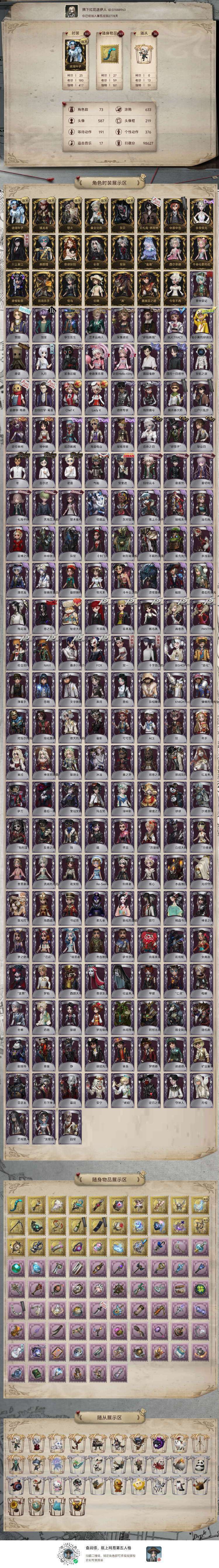 装备描述:小洋开服号,4399游戏盒区服,历史a提琴,b宿伞,b邮差,别人租了以后(已到时也不行)还进行账号登录的,发现后一律查记录拉黑!请不要随意影响他人游戏体验!租号中如果碰到顶号,可及时投诉,来避免损失,前两次投诉可能会被取消,需要投诉三次才可投诉结束后,号主会在第一时间修改密码并上架!同时,顶号的租客将被拉黑,请不要随意破坏他人游戏体验,望理解具体皮肤可以看图! 此号为4399渠道服账号!可排位,可PC到时无人租不顶号,下一个租客租了上游戏请退出游戏,如果顶号将会被拉黑!租号请不要骂人,导致禁言的话将会拉黑!使用外挂脚本非正常游戏封号的,会在平台提取租客实名信息付款账号和IP地址,立案追责根据账号价值全额赔偿!该账号估值上w,后果自负!