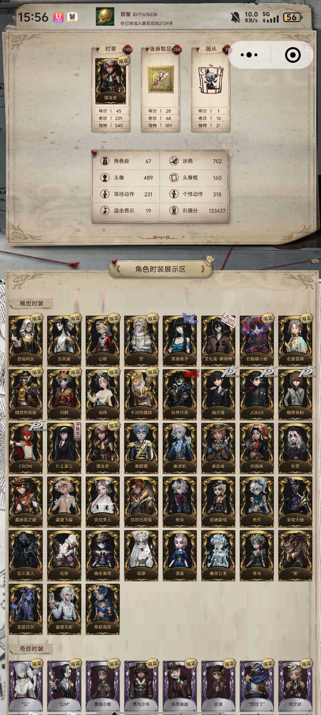 装备描述:《贵客专属号》安卓官服85金共享三真理多限定多联动情号,目前是伪半全皮号。皮肤自己看图。有三真理之下先知白dm真相小姐总裁判长东风遥心锁空艾札克等众多皮肤。最重要一点,此号价值过w已备案,开挂封号直接报警提取ip地址全额赔偿!禁言的根据时间推断永久拉黑并反馈租号客服封号处理,这辈子不能再租号,麻烦嘴臭恶意禁言的私募仔别来租号谢谢,真别恶心人谢谢!