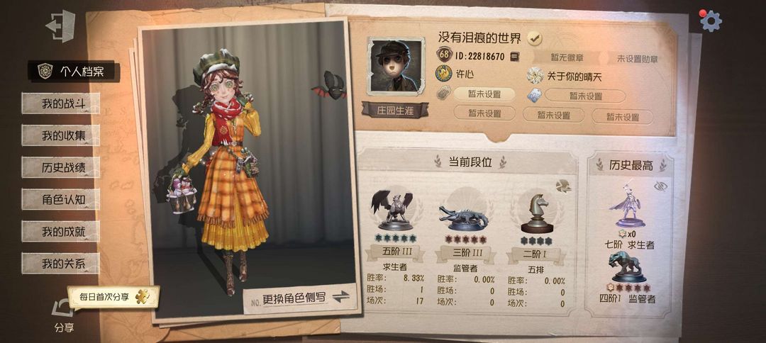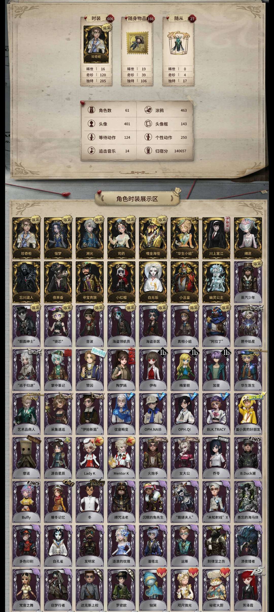 装备描述:真相小姐,珍奇柜,舞女小恶魔,假面绅士,杰克红玫瑰,前锋黑兔,园丁溯洄等,古早号