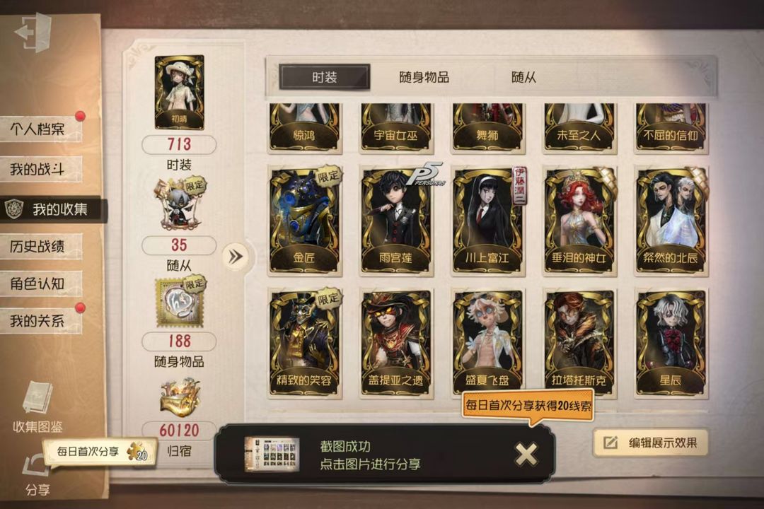 累氪2.2w共享三虚妄✨58金人物✨先知白✨加特✨墨菲斯的门廊✨珍奇柜✨瓦姬特✨寒香舞