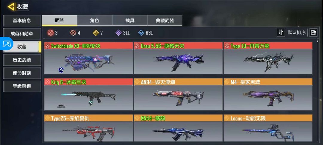 四个神话,三个满级,等级350,七个传说刀皮数量还行