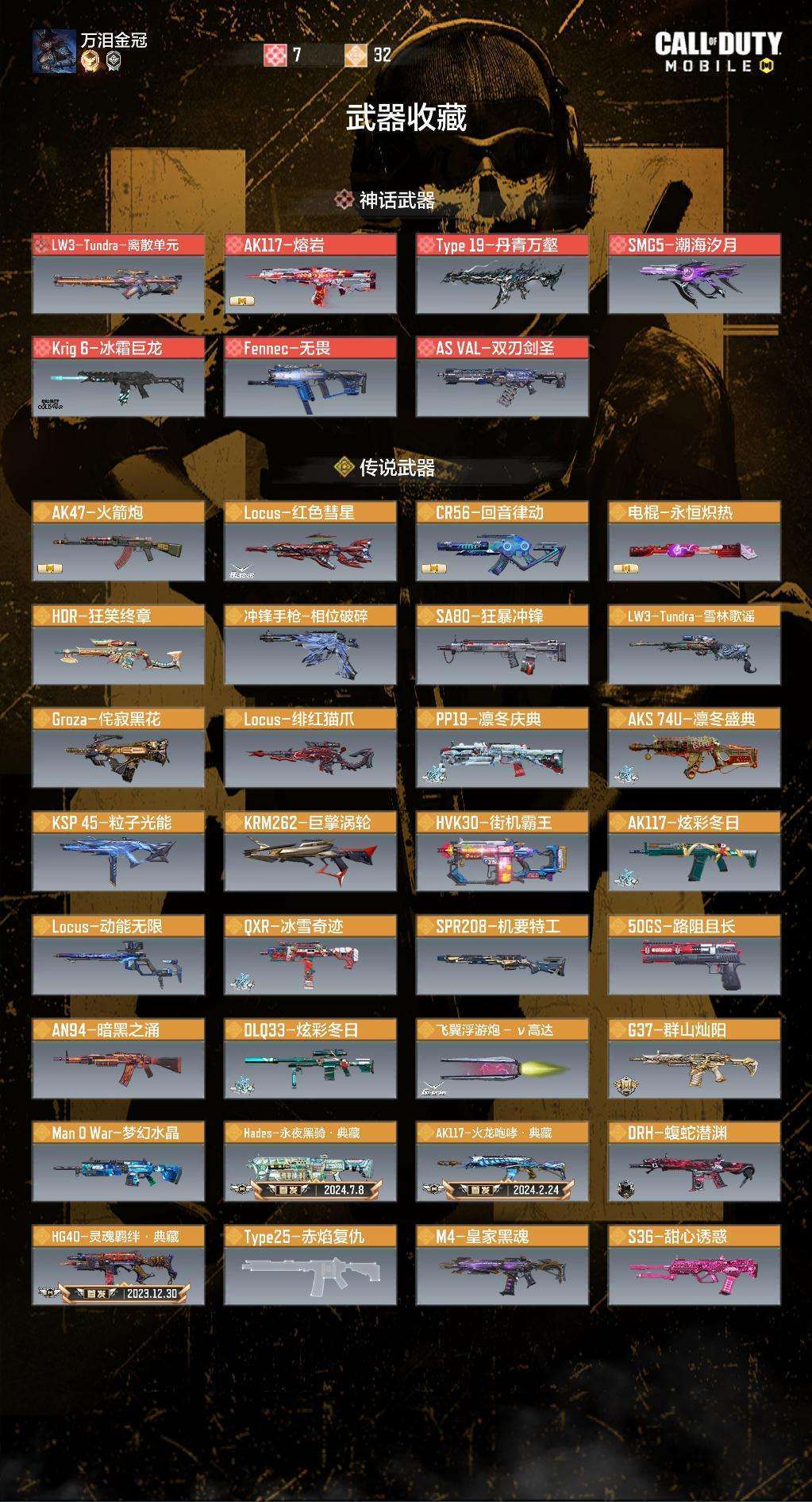 装备描述:2神7传1传角,262剧情涡轮,ksp离子,q33圣诞狙,hvk30街机霸王,208机要特工,还有自己查看