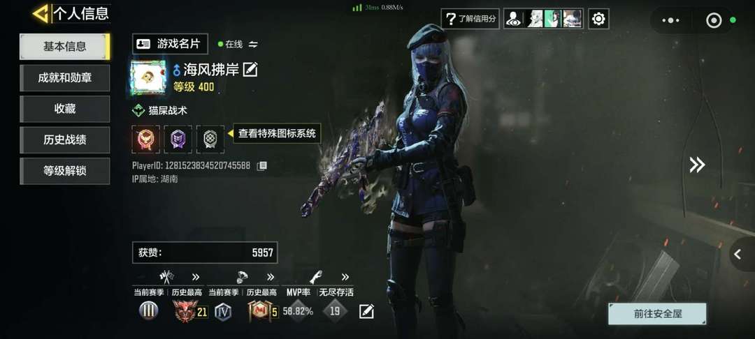 装备描述:可开排位,已禁言 可自行调整键位/灵敏度/设置等 ⭐不可使用使命卡片/幸运币/CP点等游戏货币⭐ 不可使用宝箱 禁止开挂,禁止违规游戏行为 (本账号已于公安机关报备,若因租赁者原因造成账号损失,需承担相应法律责任,违者必究!)